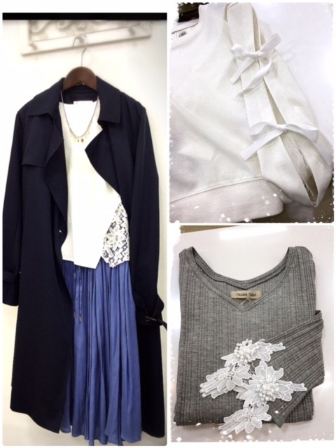 袖口に付いたノット(結び目)やリボン、レースやボリューム袖ブラウスなど、