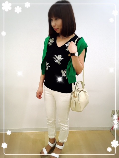 刺繍ニットで爽やかお出掛けコーデはいかがでしょうか