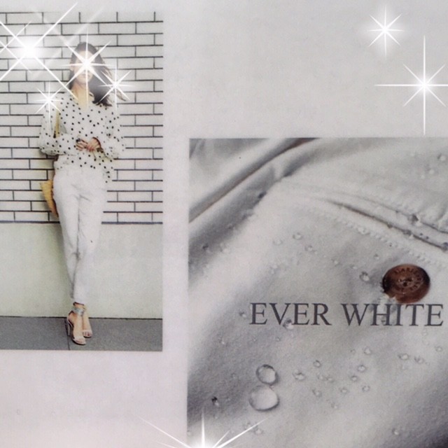 マリベルジーンのエバーホワイトは、水分、油分を弾いてくれる撥水、撥油加工の他、防汚加工も施されてますので、泥はねをはじめとした汚れも落ちやすくお天気を気にぜず、安心してお召し頂けます