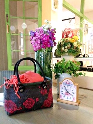 今回、T様がお持ちのバッグ、実は数年前にエガミで購入していただいたシルクのスカートをO様がリメイクした世界で一つだけのお品物だそうです!