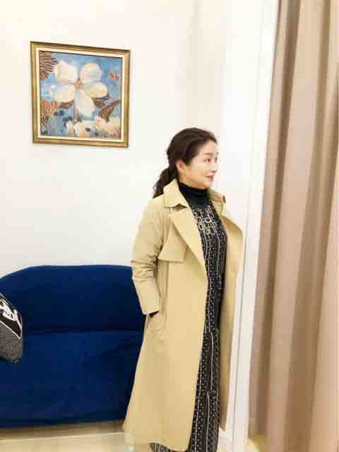 レトロなプリントのドットワンピースに大人なロング丈トレンチ✨