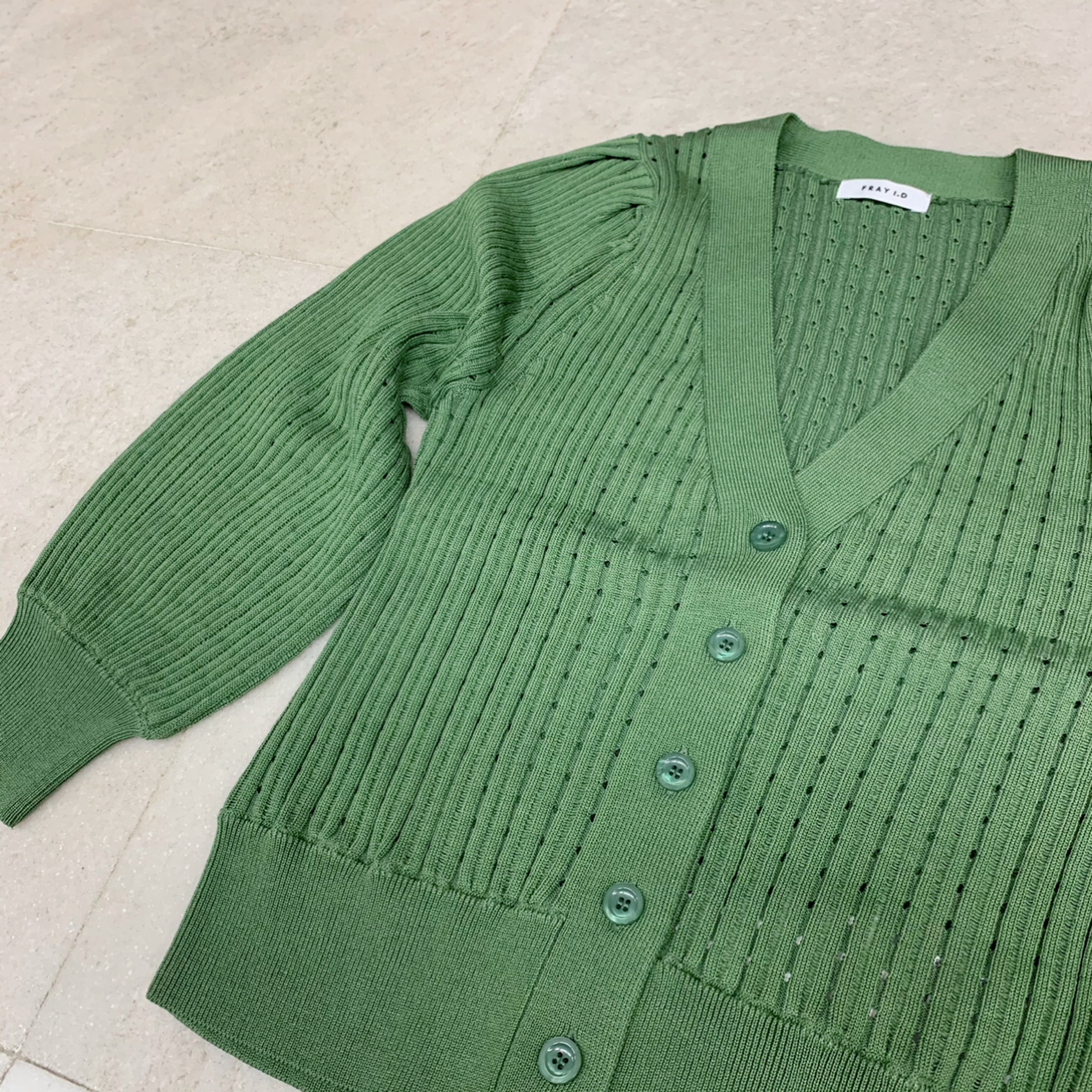 針抜きパフスリーブニットカーディガン