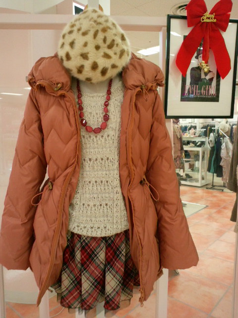 オススメは、元気いっぱい! サーモンピンクのダウンコート☆