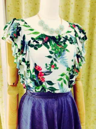 エスパンディフラワープリントフリルトップス
