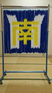 強い気持ちを込めて折り込んだ一羽一羽を、中学校のロゴ型に吊るした特別な応援幕です