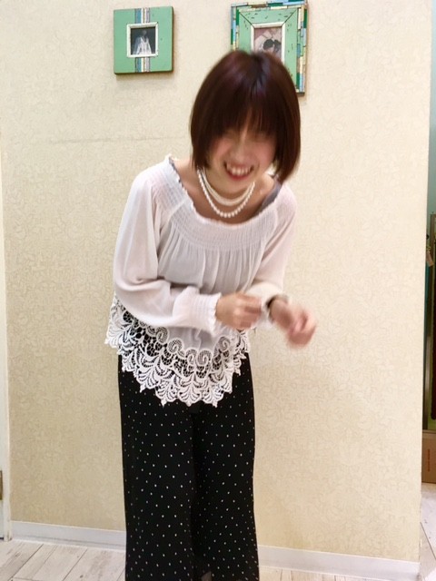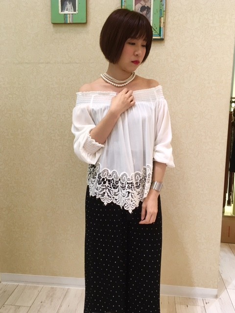 今年注目のオフショルですが、こちらは肩を出さずに着ることもできます(^.^)