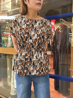 アンティークな幾何学柄ブラウス素材のトップス。