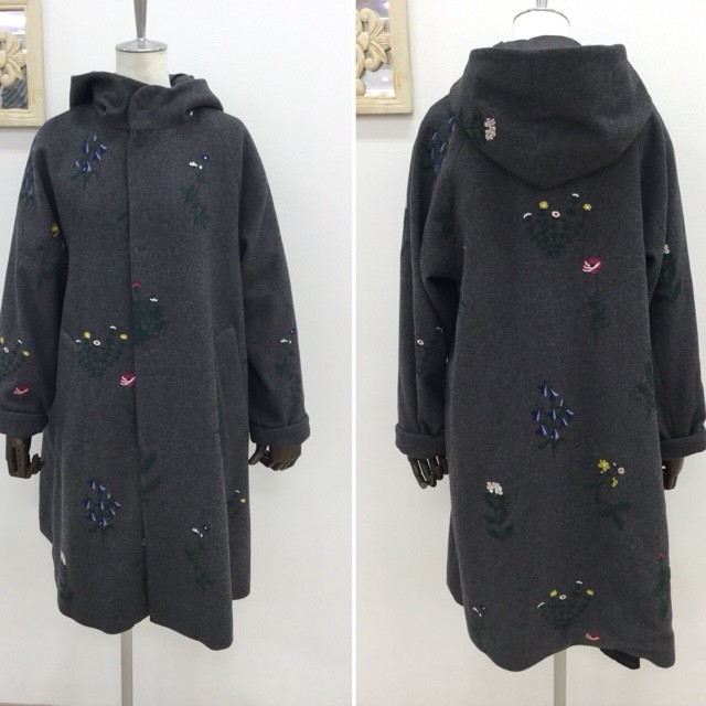 フード付きで、バックスタイルにも可愛い刺繍が‥