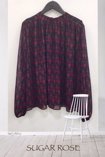 花柄のレトロな長袖ブラウス