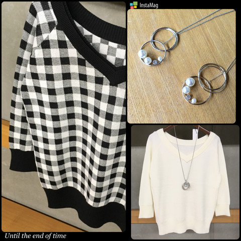 同じ型のニットですが、無地とブロックチェックでこんなにも印象が違います!