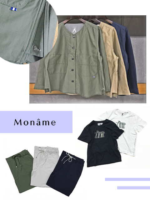 パンツの他にもTシャツやスカート、ブラウスなどモナームの新作がたくさん揃っております!