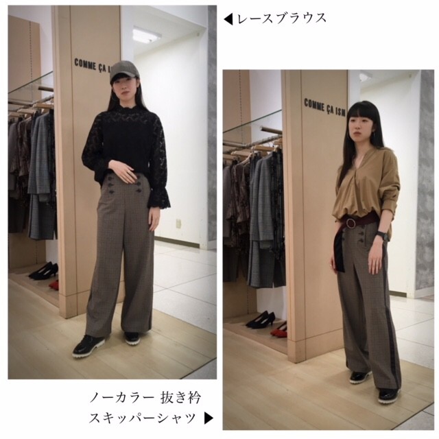 グレンチェックのワイドパンツの着回し☆コムサイズム イオン横手店