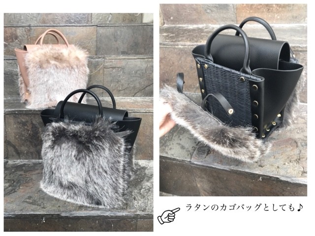 フェイクファーを外すとラタンのカゴバッグになるので、