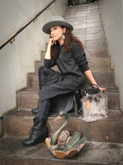 フェイクファー付きカゴバッグをコーディネートに効かせてみました。