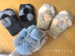 ファー付きのミトンもモコモコ可愛くて身につけると幸せ気分になりますよ〜!