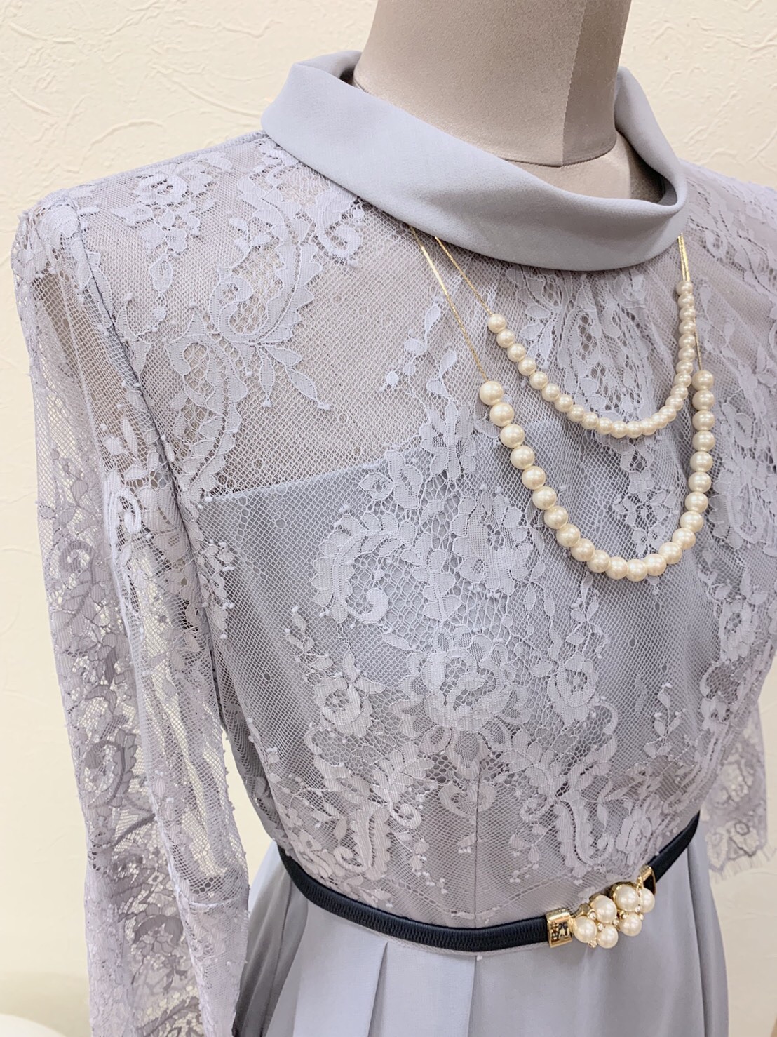 トップ部分のレースとロールネックが可憐な一着です♡