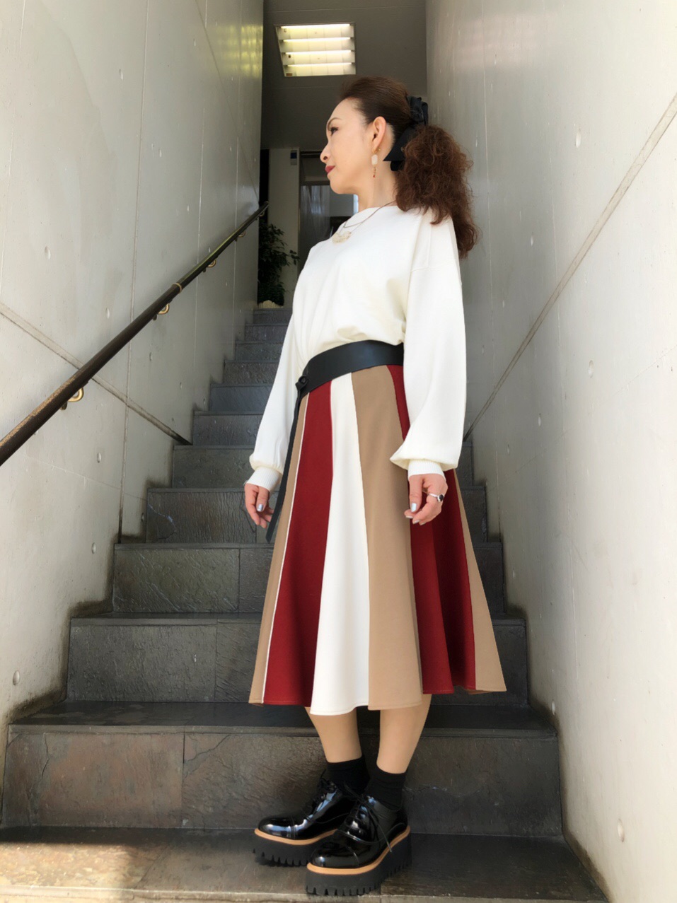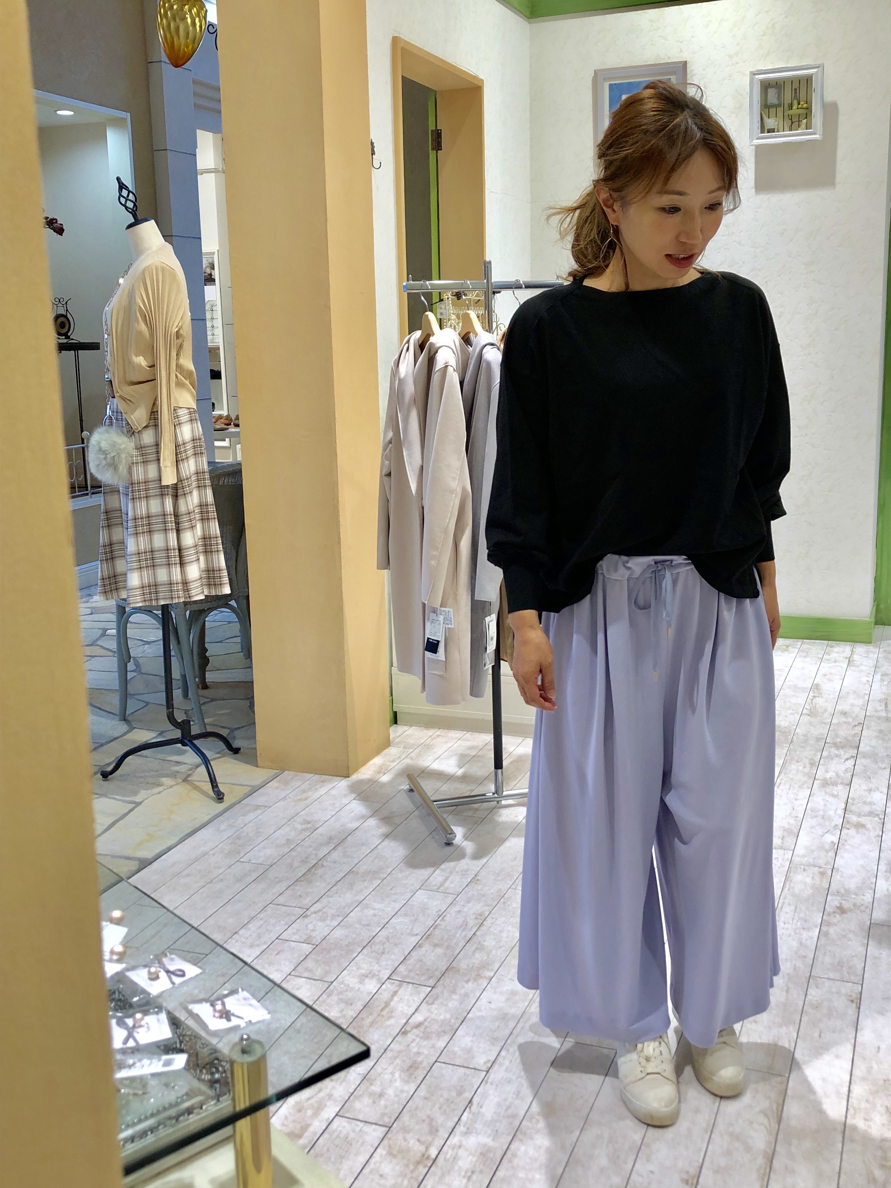 スタッフSは黒ニット×ラベンダーのパンツ合わせで♡