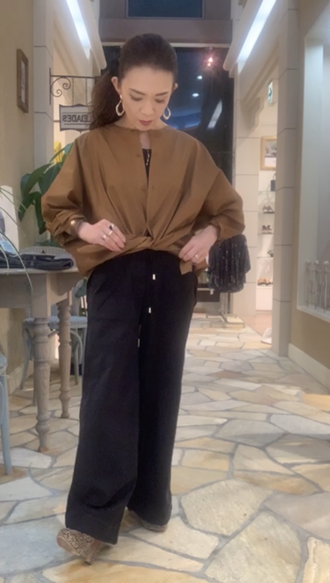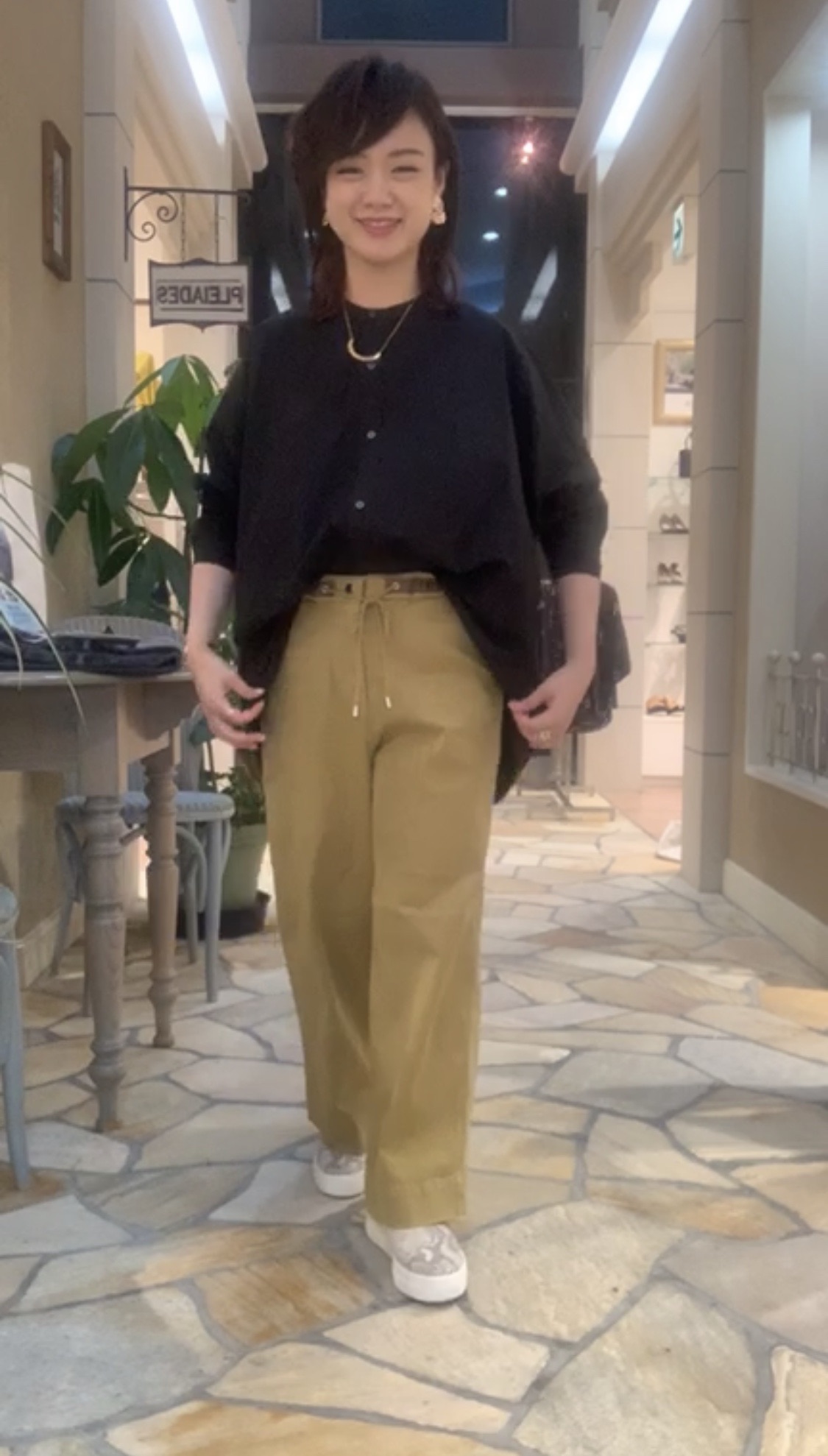 着用しているワイドパンツは