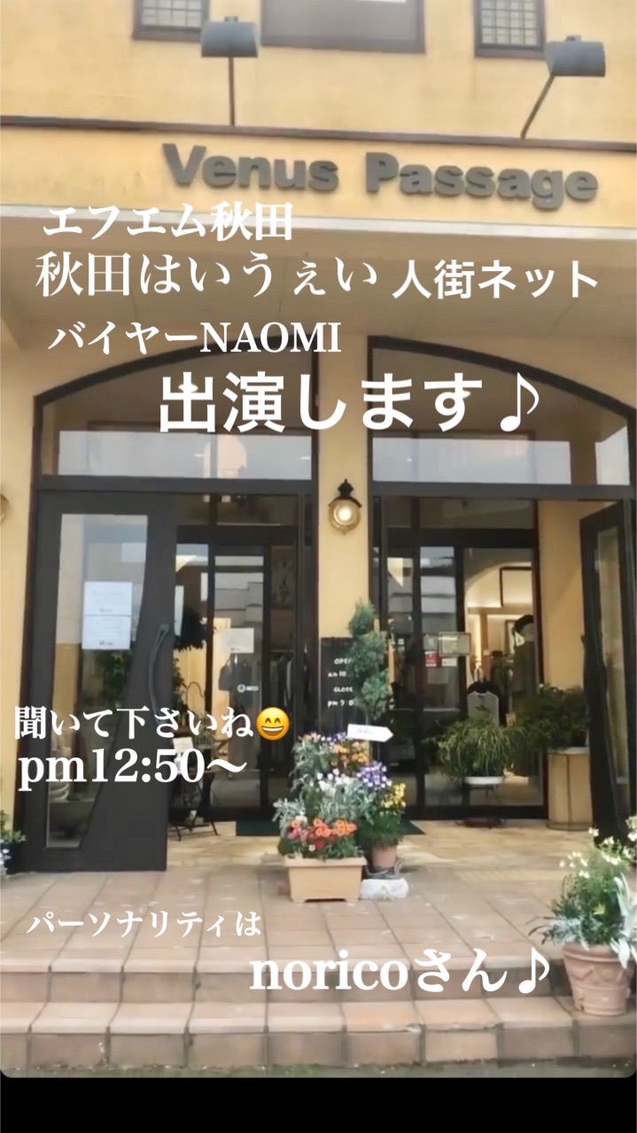 バイヤーNAOMI☆秋田FM 秋田はいうぇい人街NET☆pm12:50〜出演します^ ^