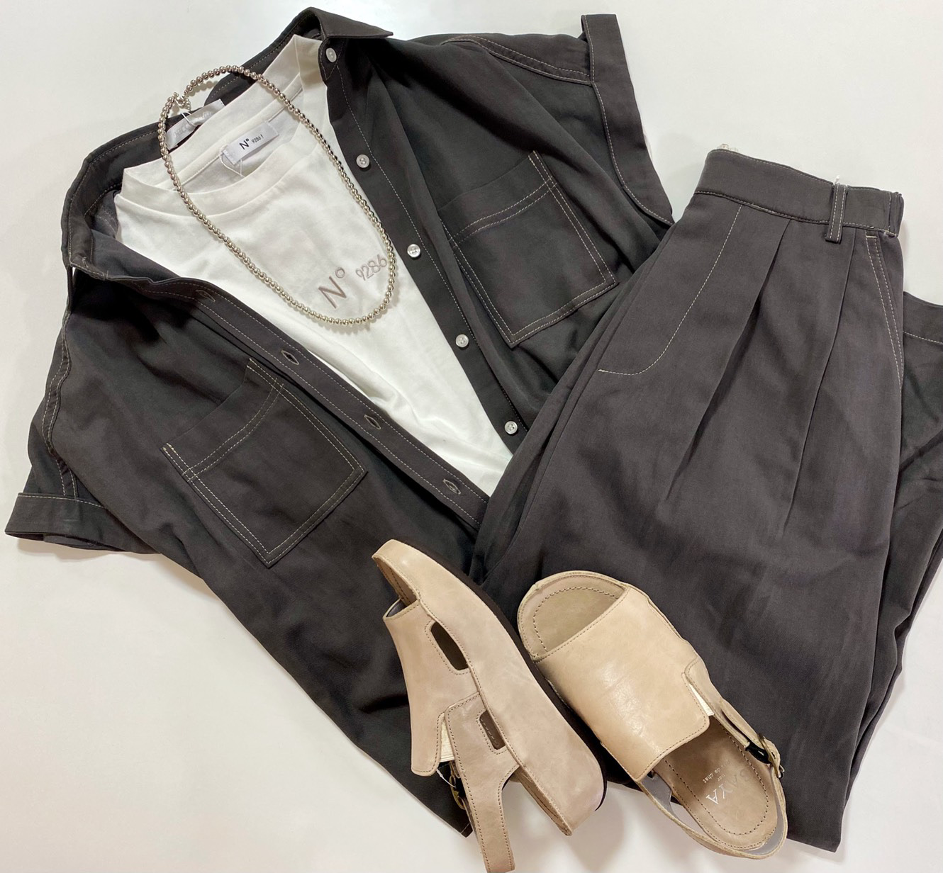 軽い着心地の春夏にぴったりな素材で合わせて着るだけで旬なコーデに仕上がります