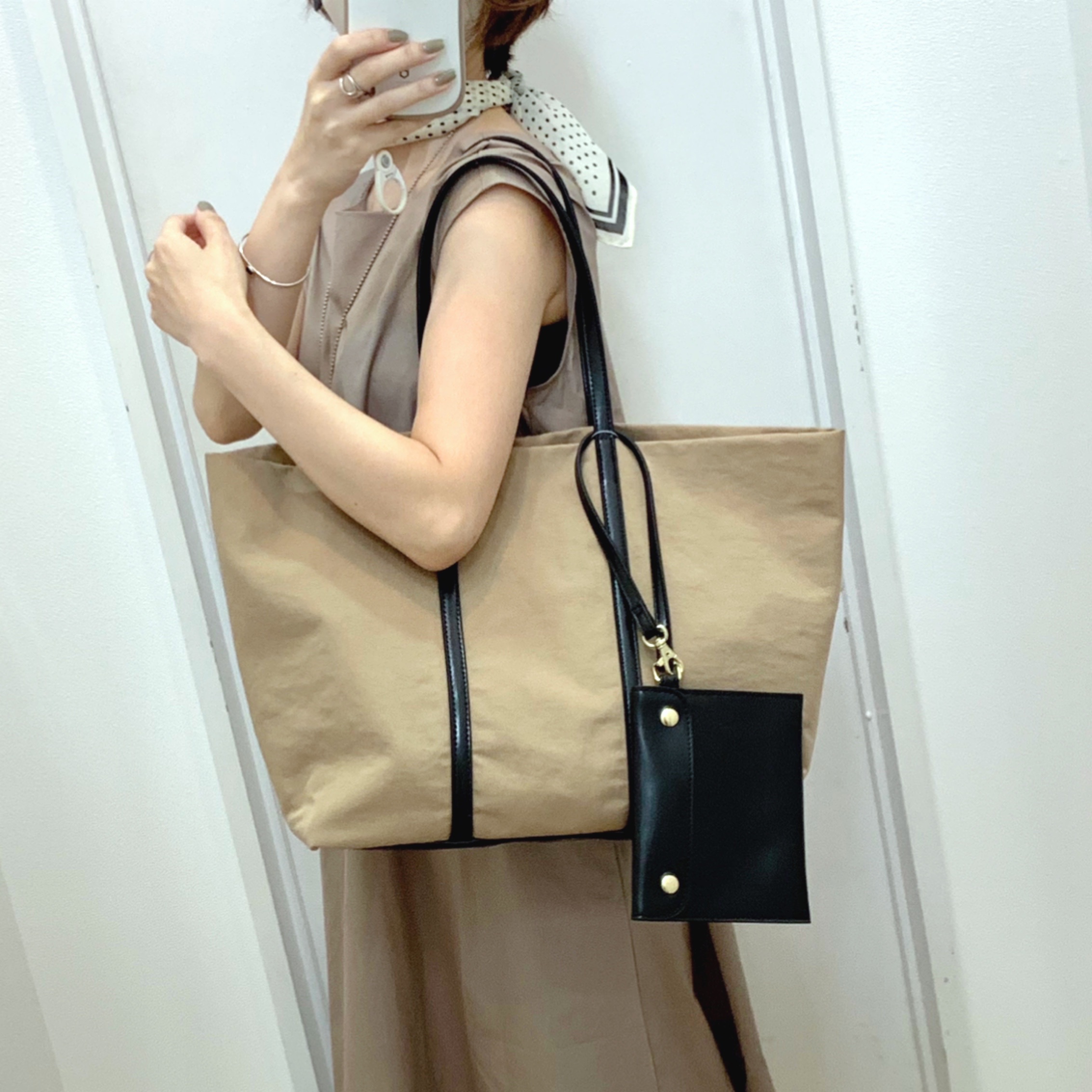 シンプルな形とカラーリングでコーディネートしやすいトートバッグです